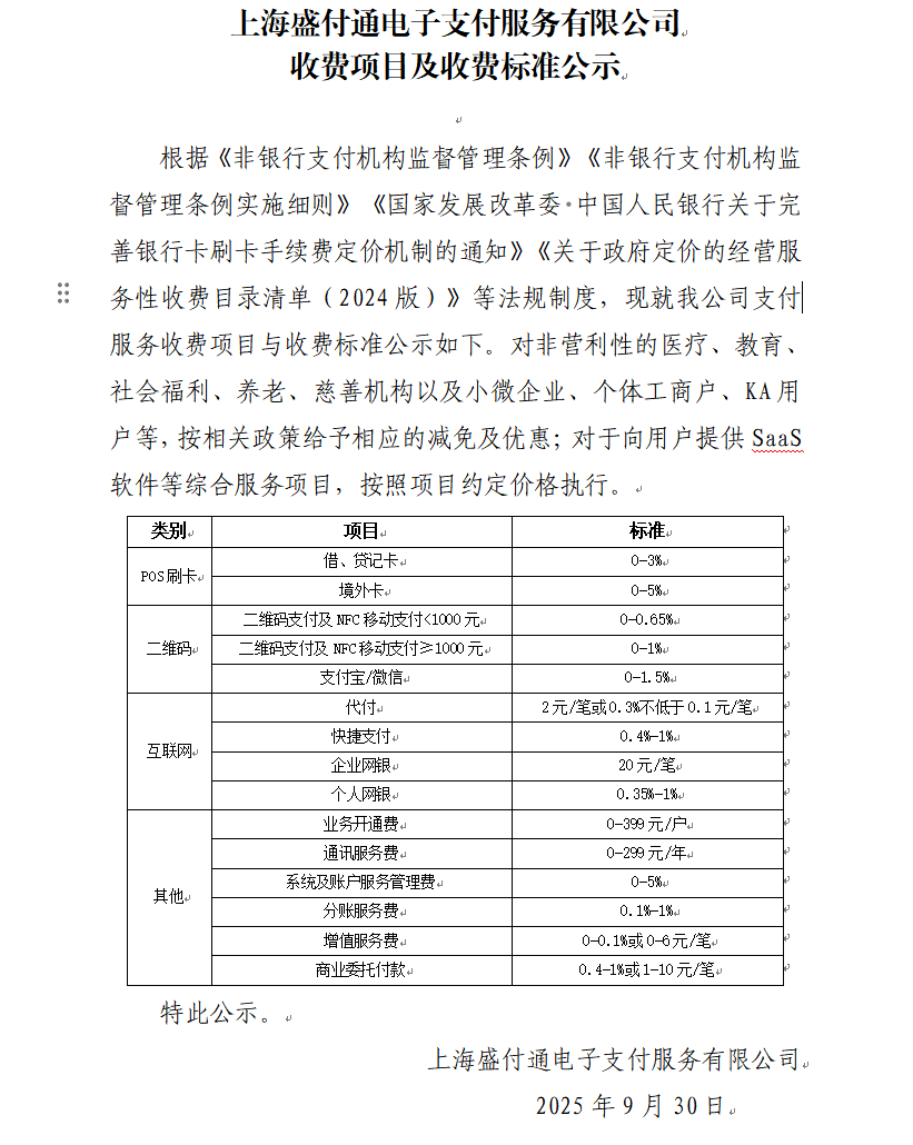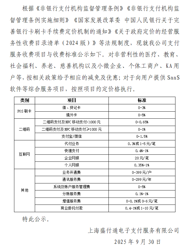 收费项目及收费标准公示